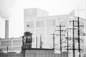 A double exposure image captured on 35mm film highlighting Milwaukee's industrial age